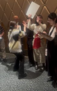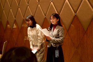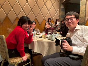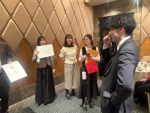 資格取得者の表彰や結婚のお祝いも行い、明るいニュースが続く温かい時間となりました。前向きな出来事が重なり、会場全体がとても和やかで活気のある雰囲気に包まれていました。フレンチのコース料理はどれも美味しく、クリスマスの飾りつけも細部まで可愛らしく、会場全体が華やかな雰囲気に包まれました。